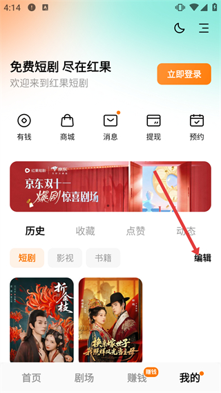 2、在“我的”頁(yè)面點(diǎn)擊【編輯】,進(jìn)入短劇編輯模式,可選擇要?jiǎng)h除的短劇。