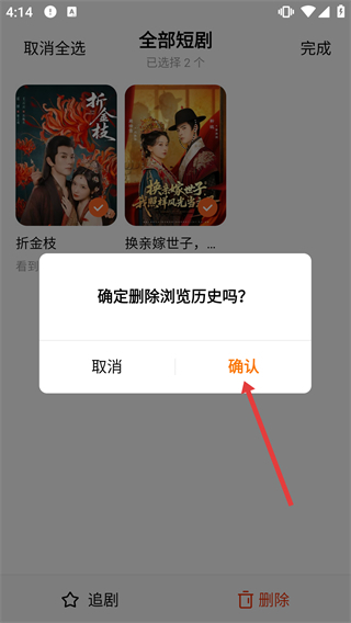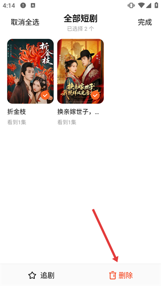 3、選擇目標(biāo)短劇后,點(diǎn)擊底部【刪除】按鈕,觸發(fā)刪除確認(rèn)流程。