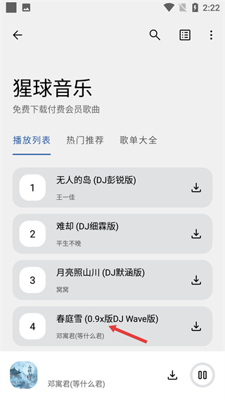 3、綁定歌單后切換至【播放列表】標(biāo)簽頁(yè),可查看綁定歌單對(duì)應(yīng)的歌曲列表,找到目標(biāo)歌曲。