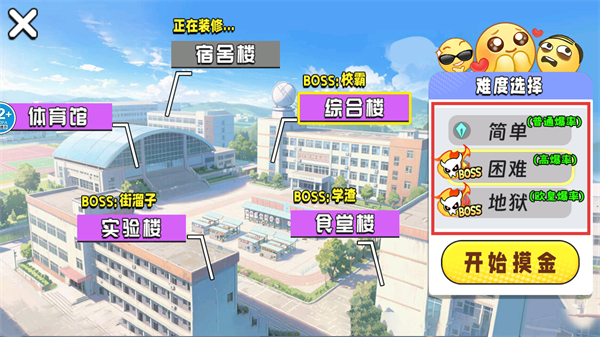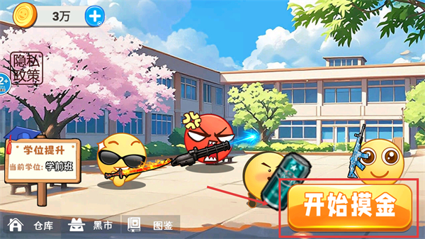 1、點(diǎn)擊【開始摸金】按鈕進(jìn)入游戲,先查看【學(xué)位提升】狀態(tài),準(zhǔn)備開啟校園摸金挑戰(zhàn)收集物資擊敗敵人。